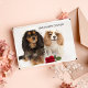 Wir stellen Ihnen unsere bezaubernden Cavalier King Charles Spaniels vor, die in Hochzeitskleidung verkleidet sind! Diese süßen Begleiter sind hier, um Ihre Grußkarte besonders zu machen. Mit ihrem charmanten Lächeln und den griechischen Hochzeitskronen sind sie bereit, Ihre fröhliche Gewerkschaft zu feiern. Glücklicher Hochzeitstag!