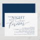 Planning a wedding Rehearsal Dinner celebration with the to-be Bride and to-be Groom, before their BIG day? Invite the guests with this "the night before forever" Perfect modern romantic navy blue Wedding Rehearsal Dinner Invitation Card.