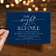 Celebrate the magical evening before “I do” with this sophisticated and romantic navy blue rehearsal dinner invitation — perfect for honoring the couple as they prepare for their big day. Design Highlights, Modern minimalist aesthetic with bold serif typography and flowing script, “The Night Before” headline sets a dreamy, timeless tone, Clean layout with ample space for all essential details (date, time, venue, RSVP info) and Crisp black text on white background — classic, chic, and effortlessly elegant. Perfect for Intimate rehearsal dinners, Pre-wedding celebrations with family and close friends and Couples who love modern calligraphy and understated luxury.