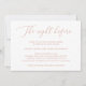 Moderne Rose Gold und Weiß Hochzeit Probe Dinner Einladung mit einem einfachen Design mit "The Night Before" in eleganter Handschrift Schrift Typografie. Ein minimalistisches Design, das mit jedem Hochzeitsstil gut funktioniert.