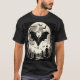 The image depicts a frightening nocturnal scene in a cemetery, illuminated by a bright full moon. In the center, a bat with a skeletal body is highlighted, its wings spread wide in flight. Surrounding it, various tombstones and crosses are visible, with twisted, barren trees adding a sinister touch to the setting. In the background, a dark castle can be seen, and several bat silhouettes fly across the sky. A human figure is present in the cemetery, adding an element of mystery and suspense to the scene.
