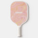This tangerine and pink tie-dye pickleball paddle is a great choice for a personalized gift. It has a retro vibe, and the font for the name gives it a branded look.