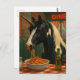 The pinto unicorn in a diner eating Spaghetti Postkarte