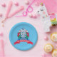 Two of Santa Claus' elves on either side of The Polar Express train.