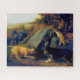 Es sieht so aus, als ob das gesamte Jagdteam daran beteiligt ist, die Kaninchen aus dem Inneren der Warren unter diesem riesigen Felsbrocken in diesem Vintagen Puzzle The Rabbit Hunters Thomas Hewes Hinckley 1850 zu holen.