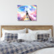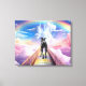 Eine große Däne, die die berühmte "Rainbow Bridge" in den Himmel überquert. Vollfarbiges Kunstwerk zur Leinwand.