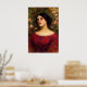 “The Rose Bower” shows a young woman framed by a thick wall of roses and glossy green leaves, her dark hair gathered back and her face turned slightly to the side as if lost in thought. The close-up composition makes her calm expression and softly lit skin the focal point, while the garden around her becomes a tapestry of warm greens, pinks, and golds built from visible, textured brushstrokes. Her deep red dress echoes the surrounding blooms, tying figure and setting together so the scene feels intimate, fragrant, and secluded, like a quiet pause inside a sheltered summer garden.