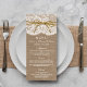 Die rustikale Garnbogen-Hochzeitskollektion ist ein atemberaubendes Design mit einem hübschen rustikalen Burlap-Effekt-Hintergrund und einem romantischen Vintagen Spitzeneffekt, der ein Garnband und Bogen fertig gestellt hat. Diese Menükarten können für Ihren besondere Anlass personalisiert sein und würden das perfekte Menü für jede rustikale Hochzeit, Brautparty, Verlobungsfeier, Geburtstagsparty und vieles mehr machen. *Bitte beachten Sie, dass Zazzle nur bedruckte Menükarten verkauft, sodass diese keine echten Bräunungen, Spitzen oder Garnmaterialien haben. ÜBERPRÜFEN SIE DIE ENTSPRECHENDEN ELEMENTE FÜR DIESE ERHEBUNG