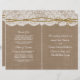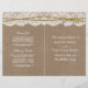 Die rustikale Garnbogen-Hochzeitskollektion ist ein atemberaubendes Design mit einem hübschen rustikalen Burlap-Effekt-Hintergrund und einem romantischen Vintagen Spitzeneffekt, der ein Garnband und Bogen fertig gestellt hat. Diese Programme können für Ihren besondere Anlass personalisiert sein und würden die perfekte Ordnung für jede rustikale Hochzeit, Brautparty, Verlobung Party, Geburtstagsparty und vieles mehr machen. *Bitte beachten Sie, dass Zazzle nur gedruckte Programme verkaufen kann, sodass diese Programme keine echten Bräunungs-, Spitzen- oder Garnmaterialien haben. ÜBERPRÜFEN SIE DIE ENTSPRECHENDEN ELEMENTE FÜR DIESE ERHEBUNG