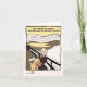 Funny cartoon inspirred by the famous work of Edvard Munch, The Scream. This illustrated card is suited to an art lover or dog appreciator it shows a dog named Edvard running-off with a ladies takeaway chicken dinner. The colours are tones of black and gold to give an aged look to a contemporary cartoon. Suitable Gift card for a graduate in arts or art history student.
