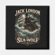 A dramatic nautical illustration of a hardened sea captain steering through storm-tossed waves, inspired by Jack London’s classic tale of survival and the wild sea.