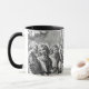 In dieser Gravur des Himmels von Hieronymus [Jerome] Wierx aus c. 1600 liegt der Schwerpunkt auf den Archangels. + Die Sieben Archangele, ihre Namen in ihren Halos eingetragen, werden mit ihren Attributen dargestellt. Die Archangels lesen von verlassen nach rechts wie folgt: Der Heilige Raphael ("Gottesheilung") trägt ein apothecarisches Glas und hält die Hand der jungen Tobias, die einen Fisch trägt. Mit einer Salbe aus Fischen heilte St. Raphael Tobias’ Blindenvater und seine zukünftige Ehefrau vom Besitz eines Dämons. Uriel (oder Ariel; "Gott ist mein Licht") hat ein Schwert. Er könnte Adam und Eva nach dem Herbst aus dem Garten Eden ausgewiesen haben. Eine Flamme (hier nicht sichtbar) brennt an seinen Füßen. Der heilige Gabriel ("Stärke Gottes") wird gewöhnlich mit einem Lilienspray dargestellt. Hier trägt er jedoch eine Laterne, die ein Licht von einem Jasper-Spiegel abstrahlt. Die Laterne symbolisiert das Wort Gottes; und der Spiegel des Jaspis - ein Mineral mit Ausschlüssen, das bei poliertem Glanz gleichwohl annimmt - symbolisiert unser mangelhaftes Verständnis der Natur Gottes. In der Mitte trägt ein großer, mit Rüstungen verkleideter St. Michael ("Wer ist wie Gott?") einen Schlachtstandard und eine Siegespalme. Er drückt Luzifer in Gestalt eines Drachen unter Füßen. Sealtiel ("Gebet für Gott"), hier mit den Augen erhöht, faltet seine Hände im Gebet vor seiner Brust. Jehudiel ("Gottes Gerechtigkeit") trägt eine Krone und eine Geißel (das himmlische Äquivalent von Karotte und Peitsche). Und schließlich hält Barachiel ("Gottes Segnungen") eine Falte seines Mantels, gefüllt mit Blume, zum Strecken oder Ausgeben. + Die Gravur wurde durch zwei biblische Passagen inspiriert: Apoc. 1:4 und Psalm 137:1-2—die im Lateinischen unter dem Bild im Originaldruck erscheinen (nicht in diesem Detail sichtbar). + Gemeinsames Fest der SS. Michael, Gabriel und Raphael: 29. September + Image Credit (M 034): Detail einer antiken flämischen Gravur von St. Michael und Archangels (The Seven Archangels) von Hieronymus [Jerome] Wierx, ursprünglich mit Vorrecht von Piermans, Antwerpen, Belgien, veröffentlicht. 1600, vom Metropolitan Museum of Art, The Elisha Whittelsey Collection, The Elisha Whittelsey Fund, 1951, 51.501.6402. Creative Commons CC0 1.0 Universell Public Domain Dedication.