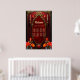 The spirit of the wonderful vintage style. Elegant gold-decorated vintage frame against a deep red background. A subtle texture reminiscent of rose petals is visible inside the frame. Tall, slender candles in gold candlesticks flank the frame, while additional smaller candles are placed higher up. Bright flowers in shades of red, orange, and teal add a mystical splash of color.