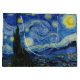 The Starry Night, 1889 von Vincent van Gogh. Es zeigt den Blick von der Ostwand seines Asylzimmers in Saint-Rémy-de-Provence, kurz vor Sonnenaufgang, mit der Ergänzung eines imaginären Dorfes.