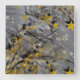 A clock that has a stone wall design on it along with gold vines and leaves, there is gold stars and the shadows can be seen, on this square clock. The art and design was created digitally on a computer with special effects.