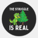 The Struggle Is Real Dinosaur & X-mas Tree Chr Runder Aufkleber