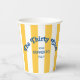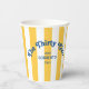 Elevate your 30th birthday celebration with The Thirty Club Yellow Cabana Stripe Party Paper Cups, featuring blue retro lettering set against vibrant yellow cabana stripes, these customizable paper cups are perfect for elevating your 30th birthday decor, adding a fun, coastal vibe these paper cups can be fully personalized with your milestone year and destination. Whether you're hosting a beach bash, poolside gathering, or chic destination party, these paper cups bring personality and charm to any gathering.