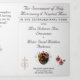 With explanations of the Mass displayed throughout, this elegant design also includes the name of the wedding officiant, names of altar servers, names of the parents of the bride and parents of the groom, wedding party names including the names for a maid-of-honor and best man, room for up to seven bridesmaids and groomsmen names, plus the names of the flower-girl and ring bearer.