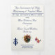 With explanations of the Mass displayed throughout, this elegant design also includes the name of the wedding officiant, names of altar servers, names of the parents of the bride and parents of the groom, wedding party names including the names for a maid-of-honor and best man, room for up to seven bridesmaids and groomsmen names, plus the names of the flower-girl and ring bearer.