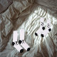 White and black socks with football theme
