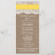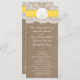 Die Hochzeitskollektion mit gelbem Sand ist ein atemberaubendes Design mit einem hübschen rustikalen Burlap-Effekt-Hintergrund und einem romantischen Vintagen Spitzeneffekt, der mit einem atemberaubenden Sand-Dollar und einem gelben Band vollendet wird. Diese Programme können für Ihren besondere Anlass personalisiert sein und würden die perfekte Vorlage für Hochzeiten, Brautpartys, Verlobungsfeiern, Geburtstagsfeiern und vieles mehr machen. *Bitte beachten Sie, dass Zazzle nur gedruckte Produkte verkauft, sodass dieses Produkt keine echten Bruch-, Spitzen-, Sand- oder Bandmaterialien enthält.