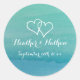 Das Meer grüne Aquarellstrand Thema Hochzeitsaufkleber. Elegantes Maldesign mit zeichn von ineinander greifenden Liebe-Herzen. Stilvolle Schriftzeichen-Vorlage für Namen von Braut und Bräutigam plus Datum der Ehe. Teil des wunderschönen Set für farblich abgestimmte Büromaterialien, Zubehör und Zubehör. Lebhafte Aquarelle / Türkisblau mit dem Logo der Liebe. Verwenden Sie diese Aufkleber / Etiketten für Umschläge Siegel / Dichtungen und für Dankeschön Gastgeschenk Geschenke.