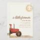 Freuen Sie sich auf eine bodenständige Babydusche mit einer charmanten Einladungskarte zum Thema Bauernhof mit einem lebendigen roten Traktor, der die Vorder- und Rückseite der Einladung prominent umhüllt. Der spielerische Satz "Ein kleiner Bauer ist unterwegs" erfasst den Kern des Themas, während die Details des Party elegant auf der rechten Seite der Karte angezeigt werden. Dieses reizvolle Design verbindet rustikalen Charme mit einer Touch von Launen und schafft so den perfekten Rahmen für ein festliches Fest mit dem Thema Bauernhof.