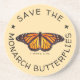 Sandstone Coaster beige with a Monarch butterfly image and surrounded by "SAVE THE MONARCH BUTTERFLIES" also with I-BONE LTD. and with butterflies in pine trees on the back. The Monarch butterflies are a treat to our eyes, and their amazing multi-generational migration from Canada to Mexico is one of the greatest migration stories of all. We enjoy and appreciate them. In Mexico they celebrate their arrival. How would we feel if the Monarchs went away for the winter and never came back? How we enjoy these wonderful creatures, and we hope they continue forever.