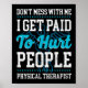 Dieses lustige Physiotherapie-unterstützende Design lautet: "Mach dich nicht mit mir ab, ich werde bezahlt, um den Physiotherapeuten zu schaden".