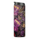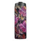Ein lebendiges Bild lila Blume auf einem dunklen Hintergrund im traditionellen Petrykivka-Stil. Die Komposition zeichnet sich durch die feinen Blumenmuster aus, mit zarten, weitläufigen Pinselstrichen, die ein Gefühl von Bewegung und Eleganz schaffen. Die Blume sind von verzierten Blätter und kleinen Dekodetails in Grün-, Gelb- und Weiß-Tönen umgeben und kontrastieren wunderschön mit der dunklen Kulisse