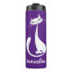 Weiße Katze Design Thermal Tumbler mit anpassbarer Hintergrundfarbe und Text.