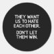 They Want Us To Hate Each Other. Don't Let Them Wi Runder Aufkleber