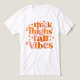 Dieses lebhafte und spielerische Falldesign besticht durch die lustige und selbstbewusste Phrase "Thick Thighs Fall Vibes" in einem kühlen, Retro-inspirierten Schriftart. Der Text ist in einem dynamischen, gestapelten Layout angeordnet, wobei jedes Wort in warmen Herbsttönen mit Orange-, Pfirsich- und Weichrosa-Farbtönen gefüllt ist. Die sternähnlichen Glitzern in der Umgebung sorgen für eine Touch von Lustigkeit und Glanz, die das festliche und gemütliche Ambiente des Designs unterstreicht. Die Typografie ist gewagt und kurvig, was ihr eine lebendige, Vintage Anziehungskraft verleiht, die das Wesen des Herbstes perfekt einfängt.