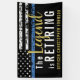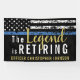 Dieses Design verfügt über eine Polizeiflagge mit schwarz-weißen Streifen und einen dünnen blauen Streifen. Der Text "The Legend is Retiring" in Gold liegt über dem anpassbaren Namen des pensionierenden Strafverfolgungsbeamten, Sheriffs, Kapitäns oder Chefs. Feiern Sie diesen Meilenstein im Stil!