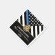 Dieses Design verfügt über eine Polizeiflagge mit schwarz-weißen Streifen und einen dünnen blauen Streifen. Ein großartiger Weg, um der neuen Polizei-Akademie zu gratulieren. Passen Sie den Namen des geschlossen Strafverfolgungsbeamten in Gold an. Feiern Sie diesen Meilenstein im Stil!