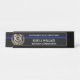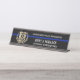 Schreibtisch mit goldenem Abzeichen mit dünner blauer Linie. Editieren Sie den Namen der Abteilung, Offiziersname und Titel, um ein Geschenk für Ihre Lieblings-Strafverfolgung beruflich.