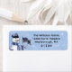 Auf dem Label der Rückkehradresse für den Urlaub trägt ein Schneemann eine Polizei, die eine dünne blaue Polizeiflagge trägt, die mit einem blauen Band auf einem hellblauen Hintergrund mit Schneeflocken geschmückt ist. Personalisieren Sie Ihre Rücksendeadresse. Ideal für alle Ihre Ferien-Mailings. Designed by artist ©Tim Coffey und Susan Coffey.