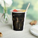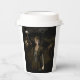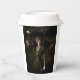 Thin female carrying a lamp and a bone through woods at night, with a dog as a companion.