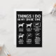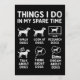 Funny dog lover quote with playful icons about walking dogs, looking at dogs, researching dogs, talking about dogs, thinking about dogs and dreaming about dogs. Ideal for dog fans who enjoy humor.