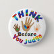 The message of “THINK Before You Judge” with hands of diversity and inclusion to respect people with autistic spectrum disorders and encourage kindness toward each other.