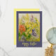 Frühlingsfeld der Blume in einem abstrakten impressionistischen Stil gemalt. Das Feld beherbergt Blüten in den Farben Gelb, Orangen, Korallen und Veilchen. Perfektes Design für Frühlingsthemen, Party und Wohngestaltung.