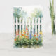 A white picket fence with flowers adorn this card. Text inside can be changed. Image is AI-generated by IveyCottage.