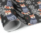Wrap your gifts with "much wow" this holiday season! This elegant and adorable wrapping paper features realistic Shiba Inu dogs wearing cozy blue and white striped turtleneck sweaters. The pattern is accented with large, detailed silver snowflakes (printed effect) and festive red holly berries against a sleek black background.