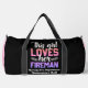 This affectionate design proudly declares "this girl LOVES her FIREMAN" in a vibrant, gradient script, accented with delicate foliage. It's a heartfelt statement of love and pride for the brave firefighter in her life, perfect for partners, family, or admirers.