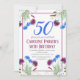 Elegant, fünfzig, schottisch, lila und blau Blumen, rustikal, floral, erwachsen, Frühling, botanisch, Aquarell 50. Geburtstag Einladungen. Handgemalte Wasserfarbensteife allein. Personalisieren Sie es mit Ihren Daten.