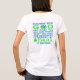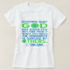Frauenkurzärmelige T - Shirt haben hellblaue und grüne Buchstaben, die lauten: "Schauen Sie, was Gott Ihnen gegeben hat, und nehmen Sie davon, was Sie brauchen. Der Rest wird von anderen benötigt." Zitat stammt von Thomas Aquinas, einem römisch-katholischen Heiligen. Wunderbarer Rat, um Ihr Leben zu führen.
