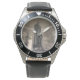 Herrenuhr aus Edelstahl mit schwarzem Lederarmband