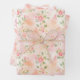 Three different abstract floral watercolor patterns of peach and pink decorate this gift wrapping paper. Image rendered with AI by IveyCottage.