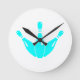 Three Bowling Pins Aqua Blue Runde Wanduhr