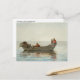 Eine kunstvolle Postkarte mit dem Gemälde des amerikanischen Künstlers Winslow Homer (1836-1910), mit dem Titel Boys in a Dory with Humster Pots (1875). Jungs in einem Boot auf dem Ozean in der Nähe von Gloucester, Massachusetts fangen Hummer.